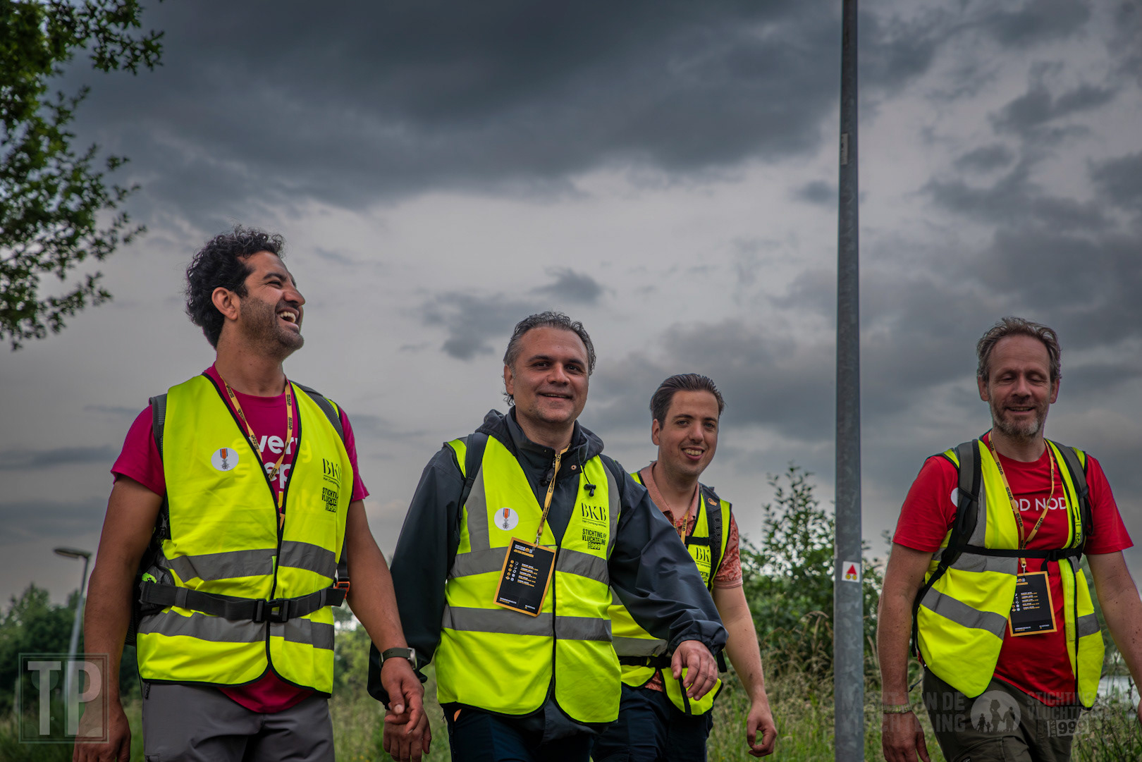 Participants of the 40-kilometre fundraising walk Nacht van de Vluchteling (Night of the Refugee) reach their halfway resting point.