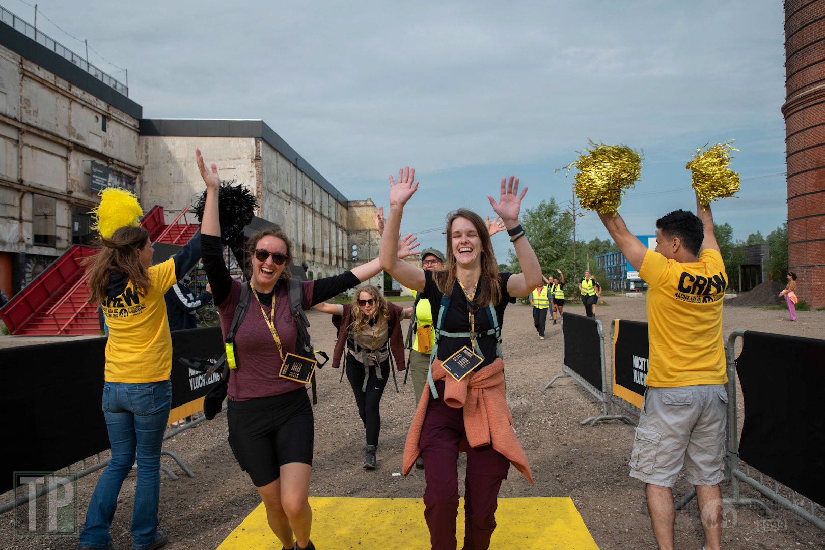 Enthusiastic participants run the final meters of the Nacht van de Vluchteling.